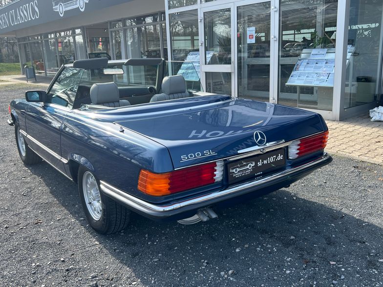 Hier bieten wir einen der seltenen Mercdes R 107 500 SL in Lapisblaumetallic mit grauem echt Leder und schwarzen Soft Top mit folgender Ausstattung an.